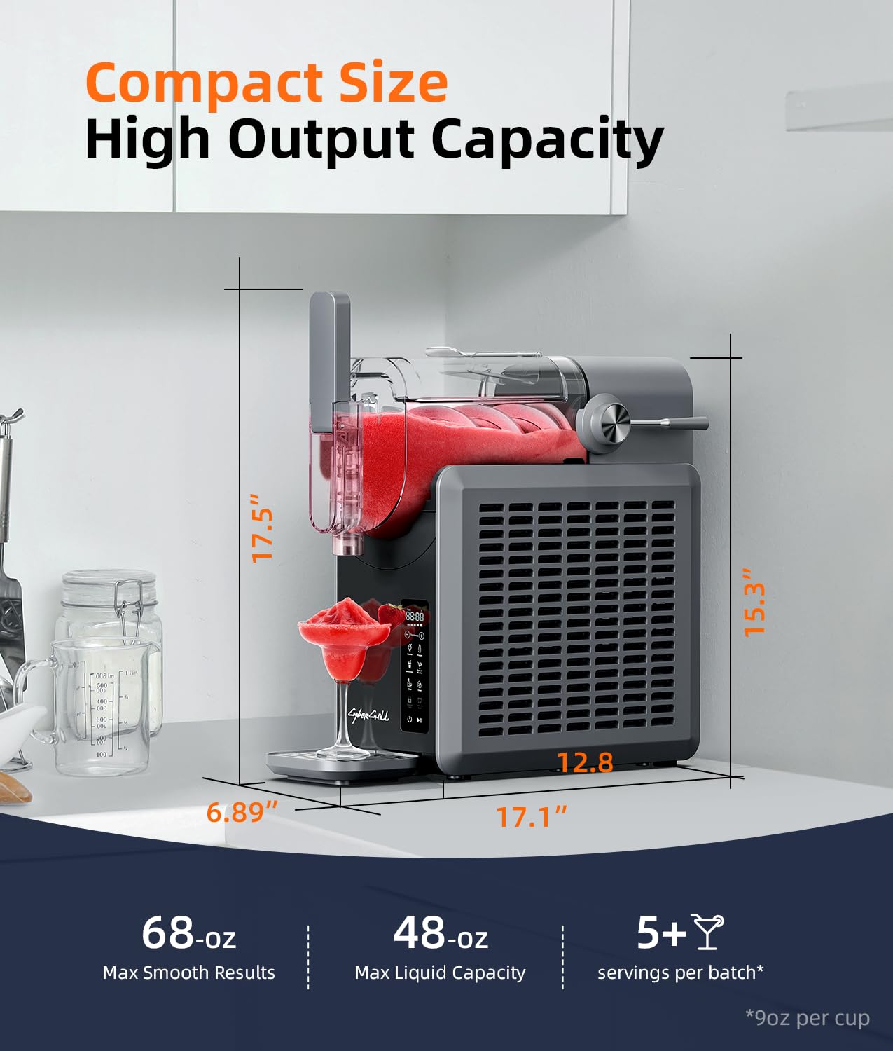 - No Ice Hassle Anymore: The slushy machine for home revolutionizes the way you make frozen drinks.Its advanced tech freezes liquids fast without ice, saving you from ice cube hassle. Just pour in your favorite liquids like juice, coffee, or even wine, and let it work its magic to create delicious, icy treats. It's truly a game-changer as a professional frozen drink maker.Don't miss it for a more convenient and fun home drink-making experience!